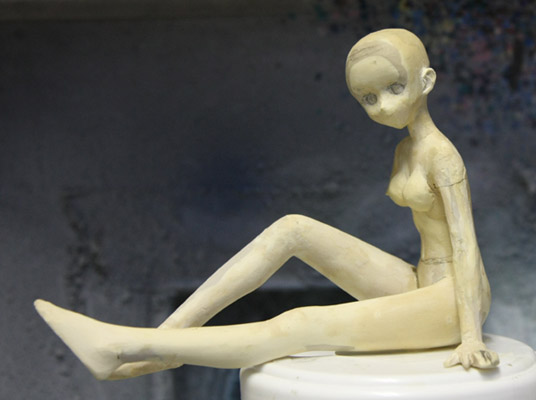 こちらは夏のWF向けに製作しているアルクェイド・ブリュンスタッドです。 一枚目は最初に日記に掲載した写真で、二枚目と三枚目はそれから一ヶ月程経過した本申請の後の段階です。本申請の写真では取り外している右腕を取り付け、髪の毛と水着をグレイスカルピーで造形していました。 髪の毛を 手首は、エポキシパテから削り出しているのですが、微調整が難しく、現状からだと指は0.6mmの糸ハンダにパテを巻きつける方法の方が早いかもしれないので、首同様、一から作り直すかもしれません。 手首に関しては常に試行錯誤しているのですが、中々良い方法が見付かりません。何か良いアイデアがあったら教えて下さい。 ![]() こちらはオリジナルの胸像。1/6スケールくらいを目安に作っているのですが、台座次第ではボトルキャップになりそうな感じです。 前々から作りたいと考えていた、メイドさんのつもりで製作中です。 当初は5月のホビーコンプレックス04大阪に向けて製作していたのですが、急な仕事が入ったのと、キャラホビ2008向けの製作が押し迫ってきたので中断しています。 現状では顔の造形が一段落したので、首を分割して、髪毛を造形している所です。 上記に二点の素材は何れも、友人に安く譲ってもらった 頭を作る時は何時も丸い状態から肉付けして行き、最後に顔の細かい彫刻を行うのですが、今回はA@B@Cさんの2005年3月〜4月の様な感じで平べったい状態から盛り付ける方法で作ってみました。 そのまま方法を真似ても良かったのですが、そのままだと目をかなり深く彫り込む必要が有るので、顔の大まかな輪郭が出来たら、縦の中心線を引き、そこを頂点に上下から見て二等辺三角形になる様に盛り付けてから、目の掘り込みを行いました。 何時もとは違う方法ですが、顔が先に仕上がるので、気分的には結構楽です。