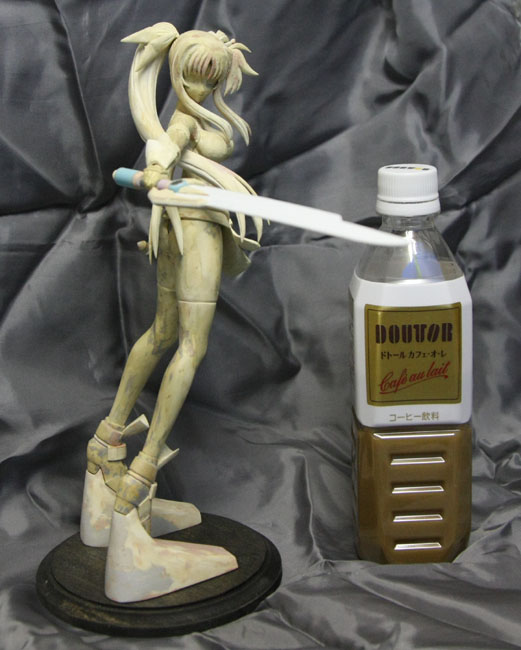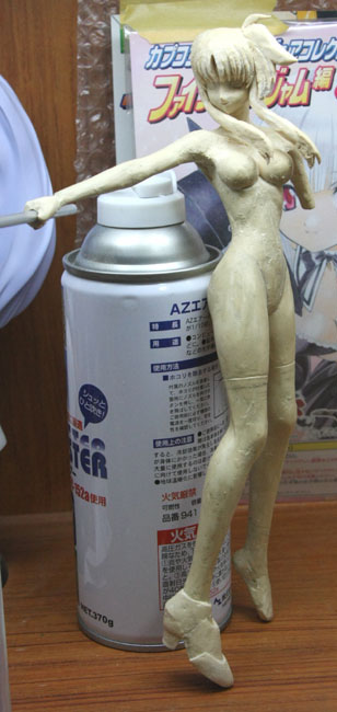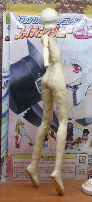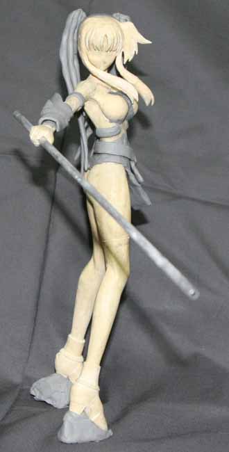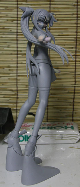![]() 一月飛んで2月10日の写真。 原型完成の数日前で、多少の微調整と上半身のモールドを入れたら終わりと言う段階です。 ![]() ![]() 2月21日掲載分。 いきなり製品と同じレジンキャストの複製品を仮組みした状態の写真に飛ぶのは、 上半身の最終的な仕上げを行っている時点で、先に完成していた下半身は先に粘土埋めしていたので、原型完成写真が撮影出来なかった為です。 完成写真はこちら。 |