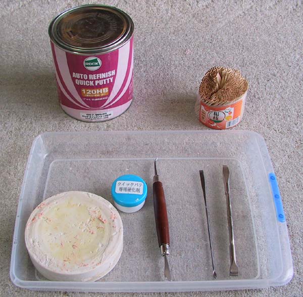 シオンは写真だと前回と殆ど変化が見受けられないと思いますが、頭や顔のジオメトリーを修正したり目を彫ったり足の角度を微妙に変えたり、色々しています。髪の毛は他の部分が仕上がってからの予定です。ホビージャパン1986年11月号別冊のALL THAT FIGUERによれば「髪の毛は一番最後に作れ」とあったので、手順としては間違ってはいない様です。タイはエポキシパテで芯を作ってポリパテて調整する予定ですが、その前に襟元と胸元をしっかり作り上げる必要が有るので、着手は髪の毛と同時でしょうか。