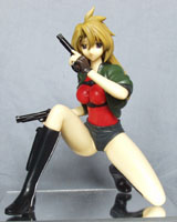 ヤンマーニと言った方が通りが良いかも知れませんがマドラックスです。 劇中のアクションシーン等に流れる「nowhere」のイントロ部分のコーラスがそう聞こえる為、ヤンマーニと呼ばれたりするのですかヤンマーニで検索すると上位にマドラックスの公式サイトが出てくるので間違いでは無い様です。もっとも、曲を作った人はヤンマーニでは無いと言っているらしいのですが。 マドラックスは同名タイトルのアニメの主人公で、その素性は本編で徐々に明かされて行くものの、物語がスタートした段階では名前からして非常にミステリアスな存在でした。 架空の情勢不安定な架国、ガザッソニカでフリーの非正規活動員を生業としている彼女が第一話で受けた任務は、反政府ゲリラの依頼で情報の入ったディスクの回収でした。 任務の当初から小さ目のリュックを持っていて、結構目に付ききになっていたのですが、後半になって明かされた中身の正体茶色いワンピースのドレスでした。 ディスクの受け渡しの際に合流した後、仲間を助けるべく単身で敵地に乗り込む青年を助けるべく、一暴れする際、態々持参したドレスに着替えて戦っていたのですが、緩いガン=カタ風の戦闘スタイルと相俟って、そのインパクトは絶大でした。ただ、一話以降でドレスを着て戦っている姿が記憶に殆ど無く、最後の戦いまで普段着だったので、別段ドレスが勝負服と言う訳ではなかった様なのがが少し残念でした。今回製作した物は、劇中の殆どのシーンで着用している普段着です。 キットはホビージャパンの作例として発表された物を改修して、イベント限定品としてワンダーフェスティバル2005冬で販売され、数ヵ月後にキャラアニ.com通販限定で販売された物です。 今回製作した物はキャラアニ.comで購入した物を製作した物で、製作開始後に同じキットのご依頼を頂いた為、購入したキットと、送って頂いたキットの中から程度の良いパーツを選別して製作しました。 キット状態は以前作ったBe−Jの藤沢やよいと大差無いのですが、原型の問題でジャケットと胸部のパーツと、腰と両足の付け根の合いが今一だったので、SSP−HGにシアノンDWを混ぜた物と、ロックのクイックパテにスベスベの硬化剤を混ぜた物で調整しました。 イベントに間に合わす為に十分時間が取れなかった為でしょうか、パーツの合い以外にも、見本写真段階で両足が綺麗に接地していなかったり、銃を握る両手の、銃と指に結構な隙間が空いていたりと、詰めが甘い様に思える部分が散見します。 顔の作りは私の好みの作りでは無いものの、髪の毛の造形が良く、全体的にキャラクターのイメージを良く捕らえていると思います。ホルスターのバックルの形状が違っていたり、ブーツのポケットの止め具がオミットさていたりと微妙に細かい部分で間違っている部分が有ったりしますが、目くじらを立てる程の事では無いでしょう。 塗装に関しては何時も通り、肌色部分の下地はボークスのクリスタルクリアーを、その他の部分はクレオスのホワイトサーフェイサーを、プライマーの後に噴き着けています。 彩色はMr.カラーのエアーブラシ塗装とタミヤのエナメル塗料の筆塗です。 肌色はヤオの肌色をそのまま使っていますが、その他の部分は、劇中では彩度が抑えられた色合いなのと、資料によって各部分の色がかなり異なる為、彩色にはかなり悩みました。 SIG P210の実銃はパーカーで塗装されているのですが、劇中やオフィシャルのイラストではブルーイング(金属を磨き上げた後、酸化剤に浸し、酸化皮膜を作る事により、若干青みがかった黒に染め上げる処理)されている様にしか見えず、モデルガン等に使う金属が含有された塗料と、ブルーイング材を使うとなると結構な金額になってしまう為、素直にスーパーブラックで塗った後、缶スプレーのスーパークリアーの半光沢で光沢を整えました。 ジャケットの色は何を使ったのか失念しましたが、シャツはキャラクターレッド、ホルスターはジャーマングレーです。ホルスターの止め具は劇中と形状が異なっていて、作例ではシルバーに塗られていたのですが、一般的なホルスターと同じ様に同色にしておきました。 ブーツはジャーマングレーを塗った後、スーパークリアーの缶スプレーで光沢を整えています。ソール部分は全体の塗装の後、マスキングして再度ジャーマングレーを塗りました。ファスナー部分はエナメル塗料のクロムシルバーです。 顔塗りはいつも通り、肌色の塗装の前に目のシャドーをブルーFS35622で、瞳をパープルに若干の白を加えた物で塗り、肌色の後に眉毛を含め、細かい部分をエナメル塗料の筆塗で仕上げています。 塗装後の接着固定はアロンアルファーのゼリー状で行いました。 ベースはミラーベースが指定されていたので通販で取り寄せました。 制作費は材料費、ベースの取り寄せ費用込みで約53,000円とさせて頂きました。 |