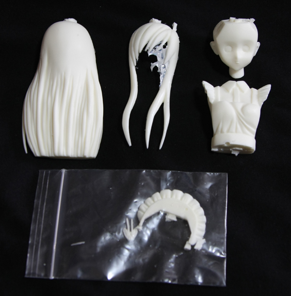顔、前髪、後ろ髪、ヘッドドレス、胸部、リボンタイの全6パーツです。 商品にはレジンキャスト特有の個体差が有り、気泡や、髪の毛の先端部分の欠損が有ります。 商品見本の写真は、商品から無作為に選んだ物を撮影しました。 決済は銀行振込(三菱東京UFJ銀行、ジャパンネット銀行)か、現金書留の郵送となります。 発送は通常EXPACK500となりますが、郵便事故の際の補償がありませんので、Yahooゆうパックでの発送も承ります。 各地域の送料はこちらを参照して下さい。重量区分は2kg以下です。 Yahooゆうパックでの発送の場合、各地域の送料に2,000円を加えた金額がお支払い頂く総額になります。 ご購入をご希望の方はメールで、住所、お名前、お電話番号、ご希望の決済方法や送付方法をお知らせ下さい。折り返しご連絡差し上げます。 |