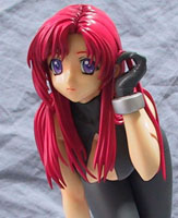 去年(2003年)の夏のワンダーフェスティバルに行く前に見た雑誌で一目ボレして購入した藤浦氏のみずほ先生の宇宙服姿です。 宇宙服と言えば色は白とか銀とかで、全身を覆い、そのまま真空の宇宙に出られる様な物を想像してしまう所ですが、みずほ先生の物は生命維持装置がしっかりした宇宙船の中で着ている服と言う意味の様ですね。まあ、みずほ先生は宇宙人と地球人との間に生まれた人なので、デスラー総統宜しく生身で宇宙に出ても全然OKなのかもしれません。 眼鏡属性の方はがっかりなのかも知れませんが、私の場合、眼鏡で好感度が変動する事はないので、模型の場合は無い方が楽です。 キットはR.C.ベルグで生産された業者抜きのもので、個体差が結構有るみたいですが、私の当たった物は、胴体パーツに離型剤で出来たと思われる細かいデコボコが少し厄介だったのを除けば、良いと言える物でした。 組立、塗装、共通して厄介な所は胴体と一体にする必要の有る両足でした。左足を接着してポリパテで合わせ目を消してからプライマーとクリアーで下地塗装を行い。同様に下地塗装を行った右足を接着してから、ポリパテで合わせ目を消して、クリアーで下地を仕上ました。 このキットは右手首と、左右の膝の都合3点が設置する仕様なのですが、両足を胴体パーツに固定する際にその事は全く考えていなかったので、完成後左足首か一番低い位置になってしまい、まともに接地しないと言う非常事態に陥ったので、左足首が干渉しない様に、本来接地すべき部分が高くなる様に板を入れようかとか考えたのですが、手近に有った少し小さめのベースから左足を出す事で解決としました。 ベースは元々他の物に使う予定だったので、既に幾つか穴が空いていたので、それを隠すのと、雰囲気を出す為に、プリンターで出力したテクスチャーを両面テープで貼り付けています。 組立ては真鍮線での挿し込のみ。 左人差し指に掛かる髪の毛は結構悩んだのですが、結局引っ掛けるだけにしておきました。 塗装 肌色は手元に有る中で一番量の多い物を使用したのでどういう調合かは解りませんが、恐らく愛沢ともみver.4.5と同じ物だと思います。 この肌色、色の濃度がかなり濃く、並行して製作していたアイドルタイプ制服のともみを普通の希釈で使ったら大変な事になってしまいましたが、こちらは失敗を受けての物なので、色味に隠してはかなり良いと思います。 左腕に2箇所、恐らく乾燥中に触れたか、シンナーが飛んで来て付いたかで、薄くなっている部分があったのてずが、肌色の出来がよかったのでそのままにしておきました。 髪の毛は、組んでしまうと塗り難い部分をバラバラの状態で濃い目に塗ってから、真鍮線の挿し込みで組み上げて塗装しました。左人差し指に掛かっている髪の毛のみ、単独で塗装しています。 色は法条まりな や千影、チェリーブロッサムの水着のみずほ先生と同じ色を利用していますが、どう調合したのか完全に失念しています。中々深みの有る色で気に入っているのですけどね・・・ 宇宙服は基本色をフラットベースを入れたブラックグレー、靴のソールに当る部分はセミグロスブラック、手首、足首部分はシルバーにクリアーコートとかなり単純です。 作例では基本色は光沢仕上げなのですが、アニメのキャプチャー画像や、雑誌イラストを見ているとフラットだったので、つや消しでしあげました。ソールの部分もつや消しにしようかと思ったのですが、メリハリが出そうな気がしたので、半光沢で仕上ています。 顔塗りは何時も通り、白目にブルーFS35622でシャドーを入れて、目の虹彩は下の方が白っぽくなるようにパーブルでグラデーション塗装。 目の仕上はエナメル塗料の筆塗りで、瞳孔はバーブルで塗って、右下の隅をブラックで塗ると言う具合に少し凝ってみたのですか、効果は殆ど有りませんでした。 眉毛はフラットレッド。写真では回りが滲んで見えるのが残念な所です。肉眼ではそうでもないのですけどね・・・ 撮影 今回の撮影は去年購入したCanon(発音は「キャノン」なのですが、表記は「キヤノン」が正しいそうですね)PowerShot Pro90isを用いたのですが、少し前に友人が作った同じキットを撮影した際にカラーバランスをオートに設定したら千と千尋の神隠しのDVDの様になってしまったので、今回は白い紙を読み込ませてホワイトバランス補正を行ってから撮影しました。 友人の物は撮影し直す訳にも行かないので、色補正を掛けましたが、今回の物はトリミングや縮小はしているものの、色に関してはそのままです。又、友人の物を撮影した際は、コンパクトフラッシュの容量の問題で圧縮率を中程度にしていた為に芳しい結果はえられませんでしたが、今回の撮影では圧縮を最小にした所、かなり良い結果が得られました。 上から2枚目の顔のアップの写真は、一つ上の写真の、縮小を掛ける前の画像から切り取った物です。 照明は、実際に飾って見