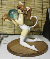 肌色、髪の毛、目は色の深みを出す為、二色の塗り重ねで彩色しています